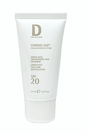 Chrono Age® URBAN BASE Uniformante viso SPF20: perfezionatore dell’incarnato grazie al sistema esclusivo di filtri solari 4UV-Defence™ garantisce una difesa quotidiana dai raggi UV, mentre KEL -3 Complex ™ crea una efficace barriera contro l’inquinamento atmosferico, minimizzando imperfezioni, linee sottili e pori dilatati.