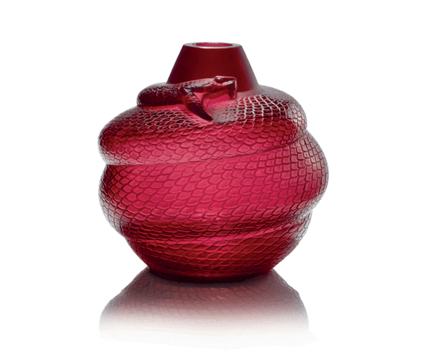 Il vaso «Serpent» – opera sorprendentemente moderna, pur essendo stata da lui creata nel 1924 –   con la sua forma di serpente arrotolato, con i tre anelli che formano il corpo del vaso, è oggi reinventata dalla Maison Lalique per la realizzazione del  prezioso flacone per  Lalique de Lalique Eau de parfum  Séduction in Edizione Limitata 2018,  dall’elegante stile Art Nouveau.