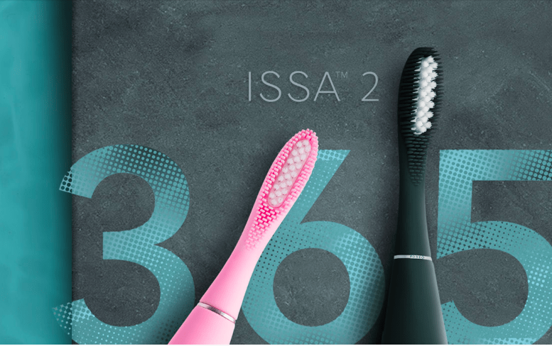 ISSA 2 evita rotazioni – che possono essere eccessivamente abrasive – a favore di potenti pulsazioni, che sono efficaci sulla placca, ma che offrono al contempo un delicato massaggio per le gengive, grazie ai punti di contatto in silicone. Inoltre, ogni ISSA 2 è dotato di impermeabilità IP68 (come l’iPhone X) e una sola carica può durare fino a 365 giorni.