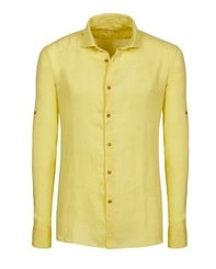 Per chi ama uno stile più minimale, che lascia parlare ilcolore, sono disponibili camicie a tinta unita, nei classici toni dell’azzurro e del blu, con lavaggio tinto in capo, nei toni brillanti dirosso, giallo e kahki. I dettagli sono sempre curatissimi, dai colletti alla coreana e New French, ai bottoni in madreperla e in colore naturale a contrasto.