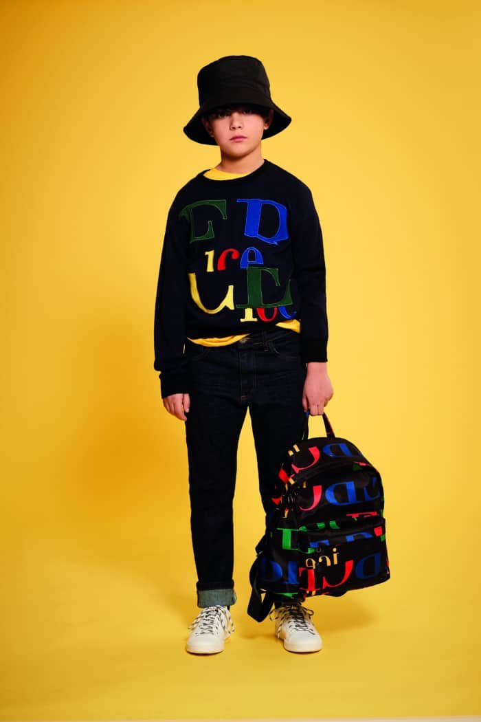 Tre mondi colore per il bambino e due per le bambine, espressioni uniche che permettono di creare nuove mischie di toni vivaci oltre ad una molteplicità di look alternativi. Logomania, fabric mix&match, nastri jacquard, ricami, stampe e termo-applicazioni, rendono ogni capo unico e speciale.