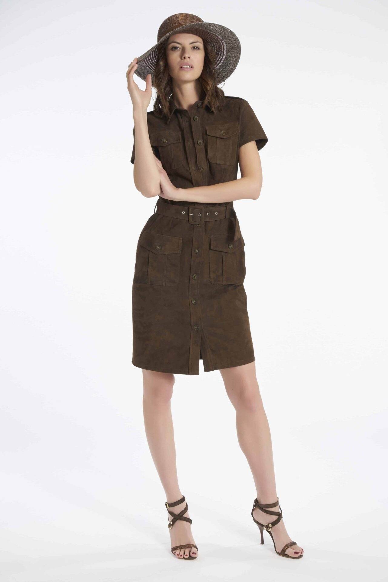 I materiali con cui è stata realizzata la collezione sono tantissimi: pelle sfoderata, camoscio, nylon seta per spolverini, abiti, salopette e il bomber, che in questo caso assume un’allure sorprendentemente chic. Stampe animalier per sandali e sabot con tacco, collane e bracciali in noce di cocco e sciarpe e parei con fantasie che rimandano alla natura.