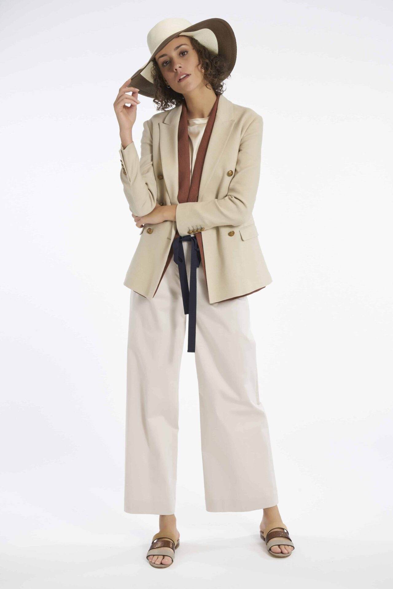Da tenere d’occhio la maglieria, lavorata con punti a effetto tridimensionale che donano ricercatezza al capo. Il classico tailleur viene rivisitato, e per valorizzare il punto vita inserisce nelle giacche la fusciacca. Favoloso su pantaloni over, mentre quello con giacca smanicata è perfetto sui pantaloni corti alla caviglia. Must have Eleventy come al solito la giacca, mono o doppio petto, in bianco, panna, terra bruciata con bottoni in metallo spazzolato oro. La versione multitasche è pratica e versatile. Per vestire in stile safari in viaggio ma anche in città.