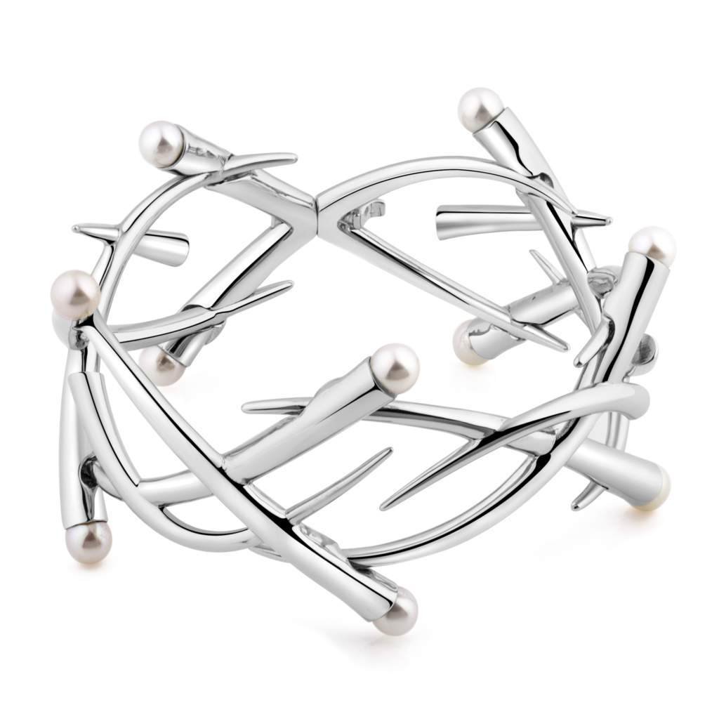 I gioielli della linea CUSPIS si ispirano alla spina: l’argento lavorato con forme geometriche appuntite incontra il calore e la bellezza della perla.
