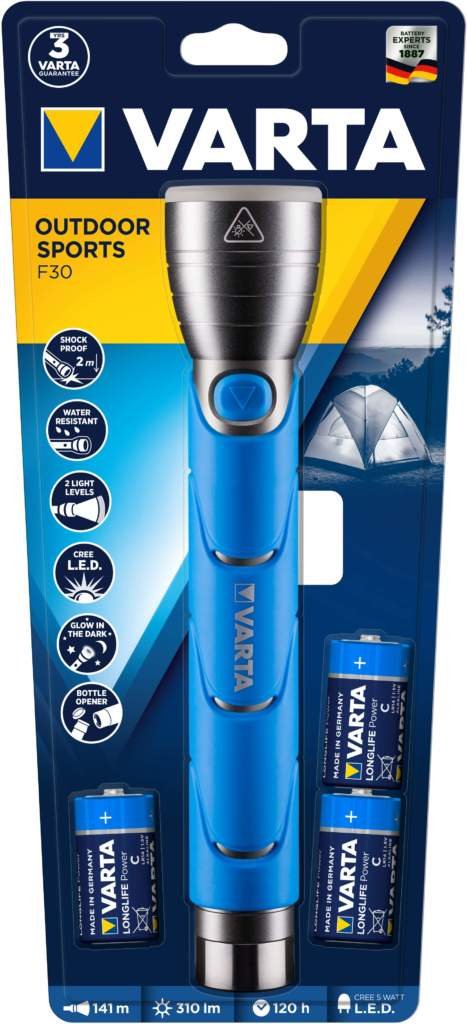 Varta mette a disposizione anche una serie di torce pensate per gli adulti. Compagne perfette per ogni escursione e per gli amanti delle passeggiate notturne, la serie di torce LED Outdoor Sports offre tre diversi modelli in alluminio anodizzato.
