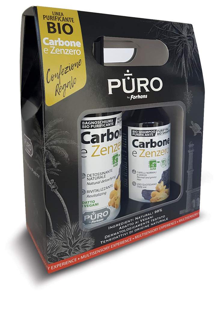 Ha anche una funzione tonificante. Sia per il corpo, che per la cute e i capelli. Il carbone di bambù ha una profonda azione purificante, mentre lo zenzero è rivitalizzante. Quest’ultimo proviene da agricoltura biologica ed detiene la certificazione AIAB. Il bagnoschiuma (500 ml) è consigliato per un uso quotidiano e va bene per la pelle di tutta la famiglia. Lo shampoo (250 ml) è l’ideale per i lavaggi frequenti, specie per i capelli grassi che si sporcano più facilmente e necessitano di cure maggiori. Non li appesantisce e li purifica.
