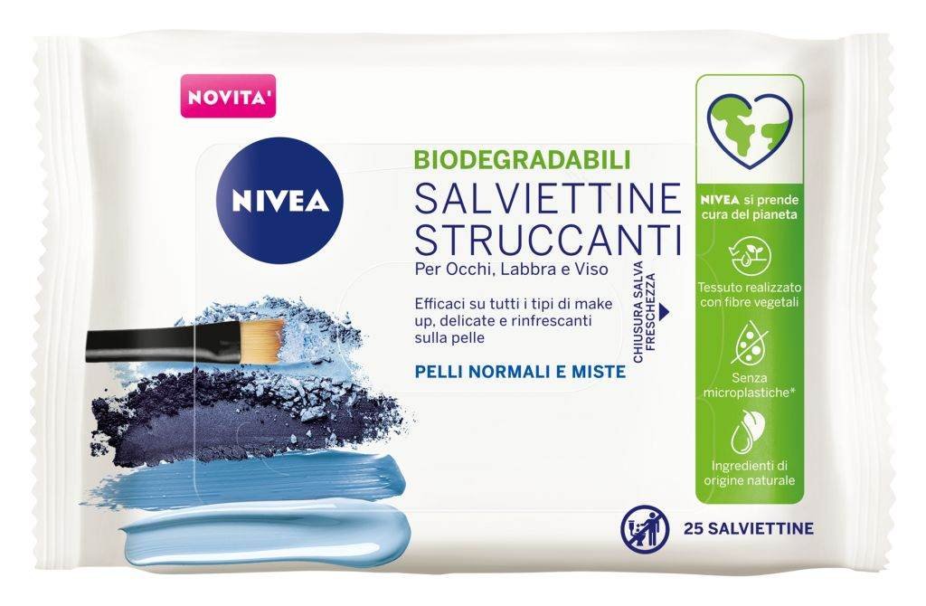 Arrivano anche le nuove salviettine struccanti 100% biodegradabili, per rimuovere il trucco con estrema delicatezza, pulire la pelle dalle impurità mattina e sera e rinfrescarla delicatamente. Nivea non accetta nessun compromesso tra qualità ed efficacia, per questo ha reso la sua gamma di salviettine 100% biodegradabili e quindi ancora più sostenibili! Il massimo della cura del viso unito a una grande attenzione per l’ambiente. La formula contiene 100% fibre naturali vegetali, senza microplastiche, siliconi e parabeni.