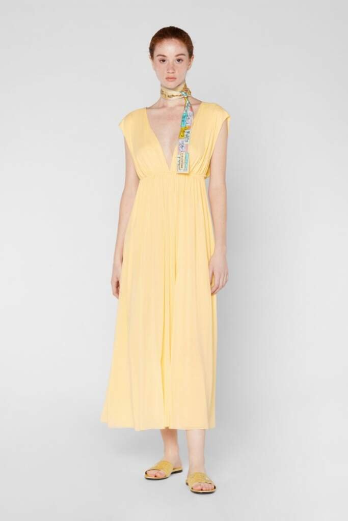 Per un occasione importante o una serata molto elegante è ideale un vestito lungo e ovviamente di colore giallo: sul modello ideato da Proenza Schouler sono presenti dei tagli oblò lungo i fianchi e il collo dolcevita.