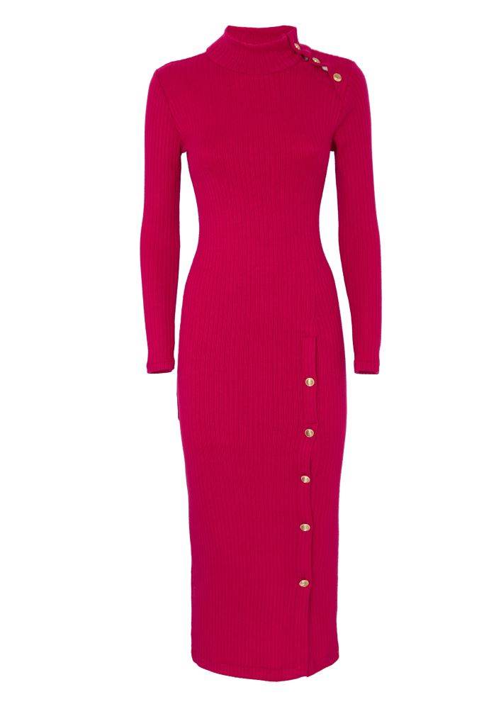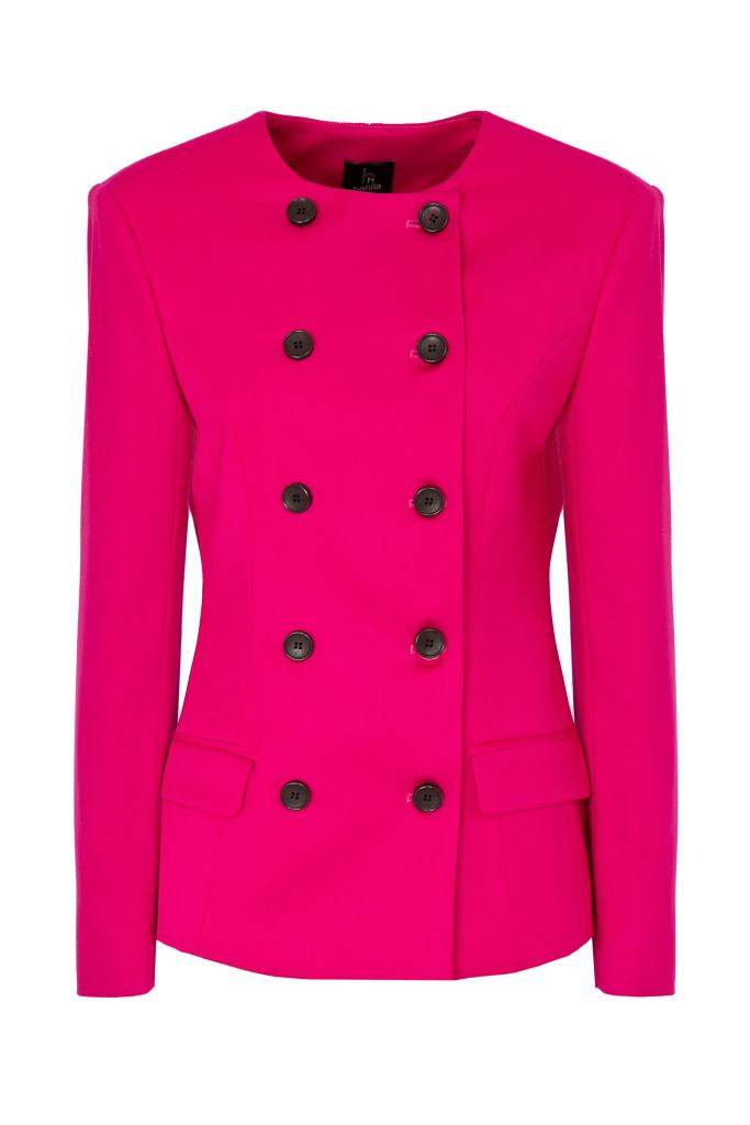 Non sono da meno le creazioni dal mood moderno di Hanita, come l’abito silhouette in maglina a costine con bottoni dorati e la giacca dal taglio militare sempre in splendide shade di rosa magenta. Come fare a resistere?