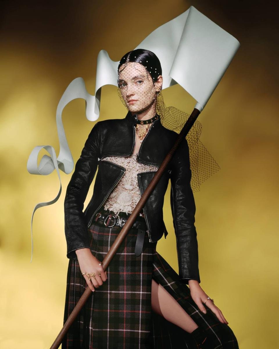 Maria Grazia Chiuri ha scelto di rendere omaggio alla cultura scozzese, fondendo le suggestioni storiche con il dinamismo della moda contemporanea.