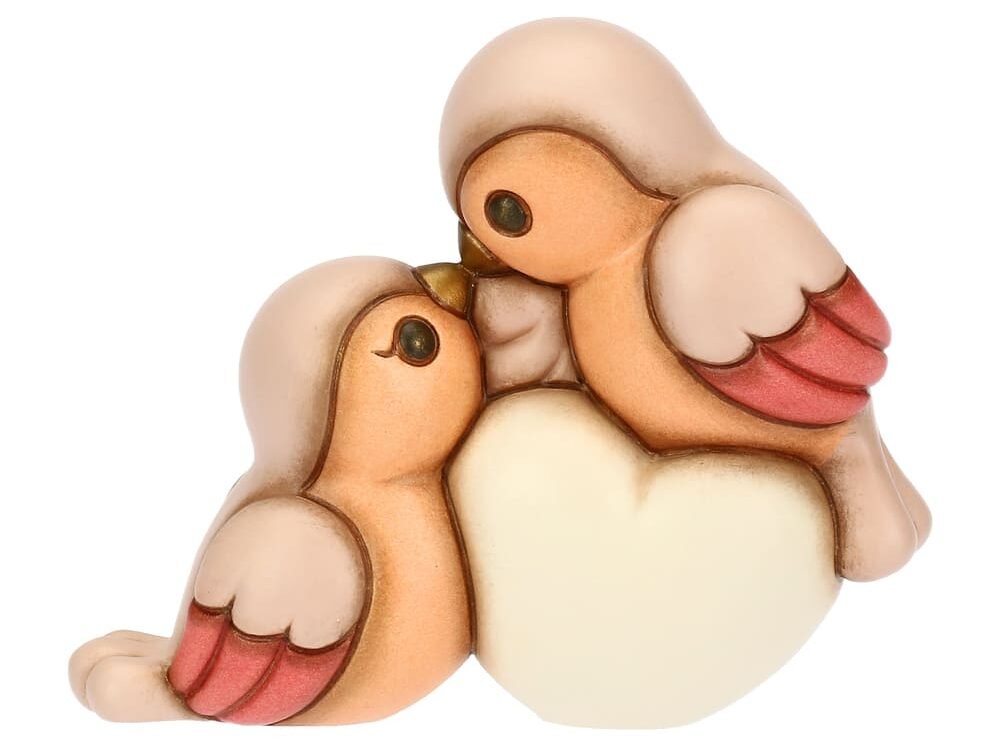 - Coppia ciuffolotti in ceramica con cuore, medi (T10093274H90): Con piume rosa e crema, i ciuffolotti sono pronti a portare serenità e amore in ogni casa. Il grande cuore al centro di questa creazione è un simbolo di supporto e complicità.