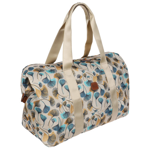 Alcuni modelli presentano anche una stampa floreale su base beige, arricchita da dettagli in pelle color tabacco, per una combinazione di eleganza e praticità.