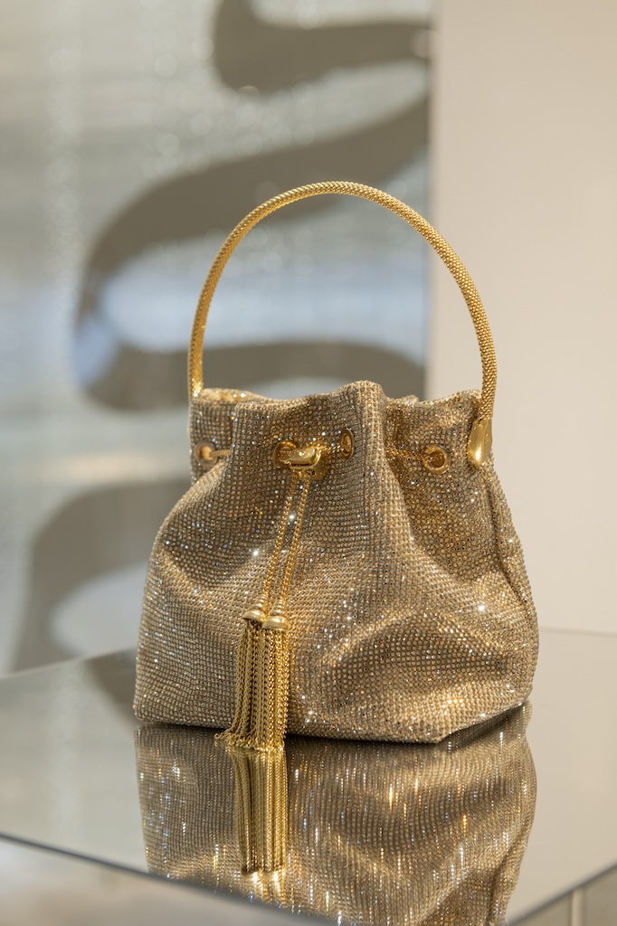 Rene Caovilla aggiunge alla preziosa collezione di calzature  una capsule collection di tre mini bag per completare ogni outfit. Il piccolo e prezioso Bucket bag con strass all over riprende l’arancione e l’oro dei tramonti invernali, ed è disponibile anche in velluto nero.