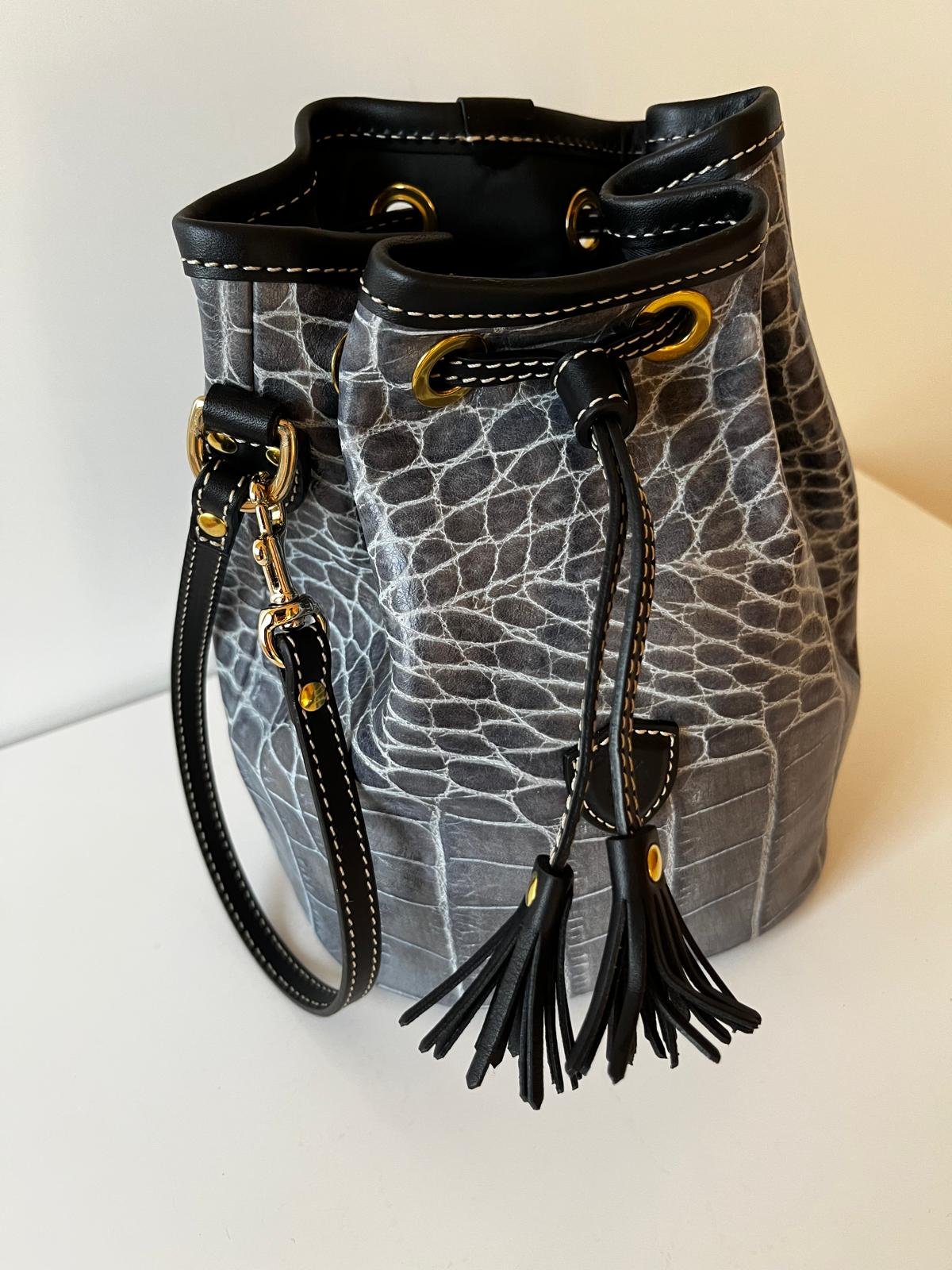 Anche per questa collezione Felisi incide il proprio marchio su ogni sua creazione. I modelli disponibili sono Secchiello, Tracolla, Pouch (il “secchiello” pensato per contenere l’essenziale) Piccolo e Pouch Grande.