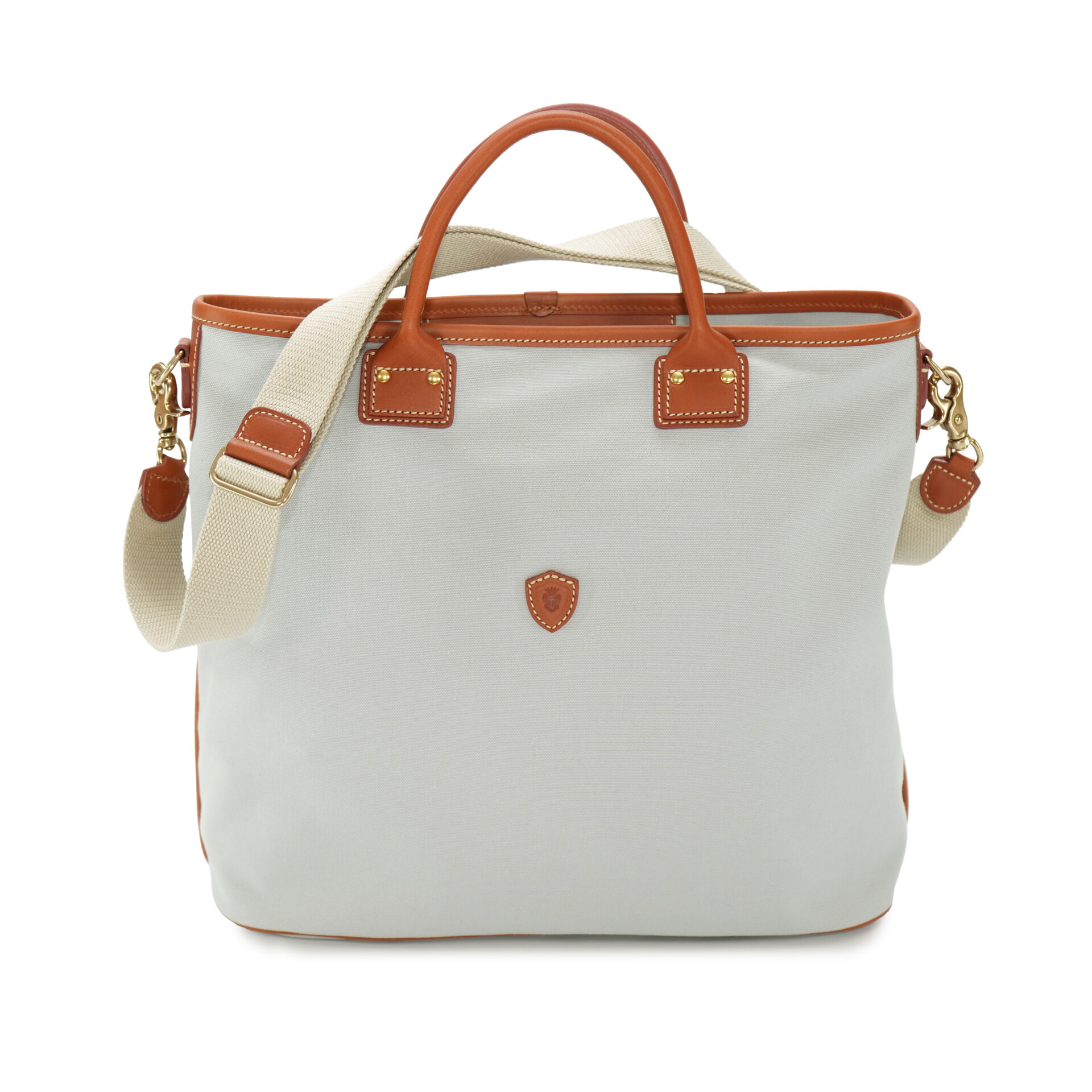 Borsa Felisi. A doppia portata, in canvas di cotone di colore grigio perla con finiture in cuoio.