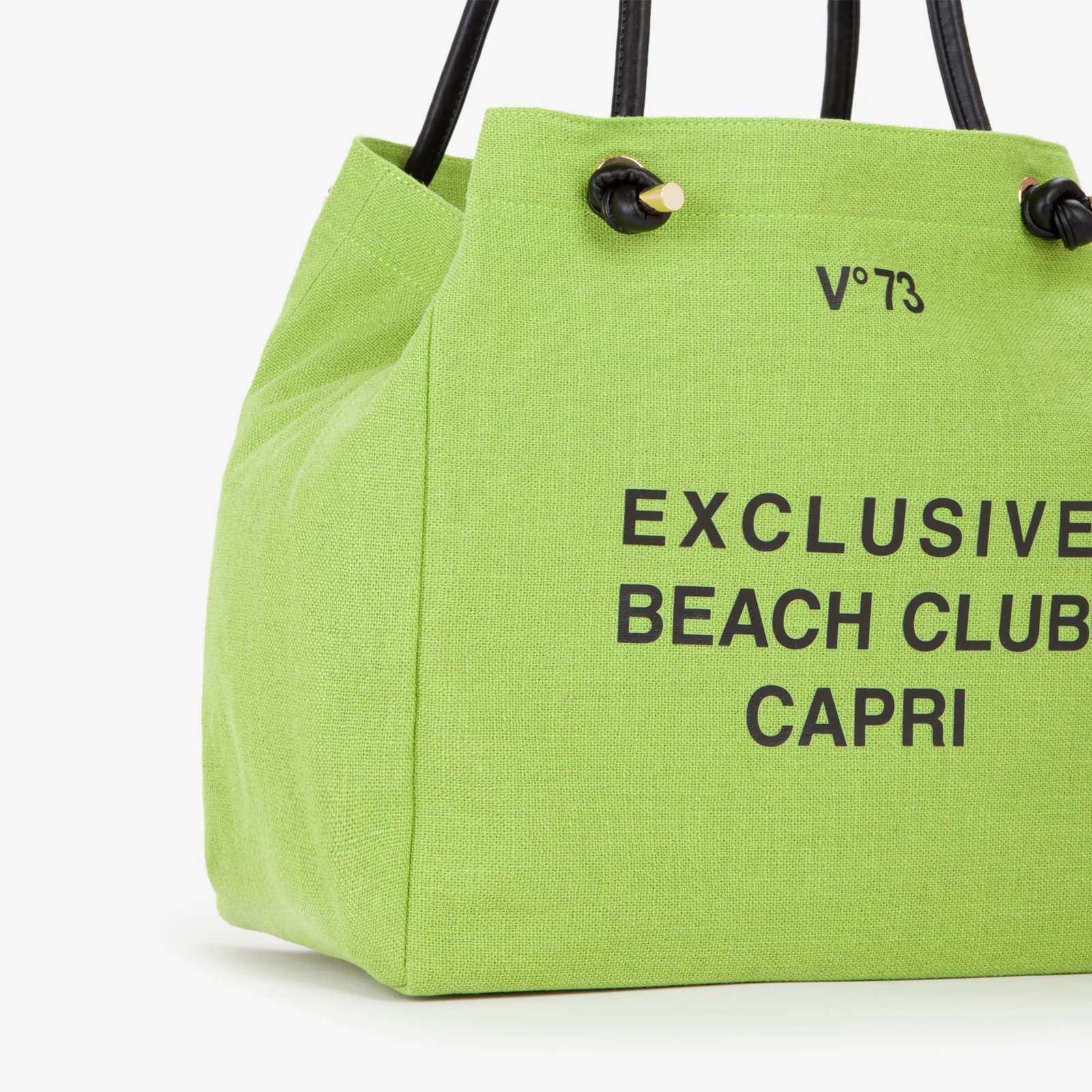 Shopping bag  Beach Club Capri V°73. Nata per un tocco trendy in città è adatta anche per la spiaggia. In canvas con manici tubolari neri e stampa frontale exclusive.