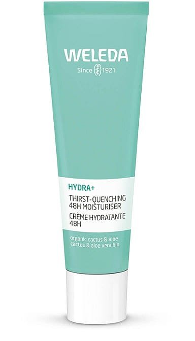 Hydra+ Crema Idratante 48H Weleda Crema idratante ad assorbimento rapido con estratto brevettato Moisture + Bio-Hydro. Fornisce alla pelle un’idratazione immediata e assicura un’efficacia fino a 48 ore. La formula combina le proprietà idratanti dell’aloe vera biologica, della fitoglicerina e del cactus; dona alla pelle un aspetto naturalmente sano e fresco.