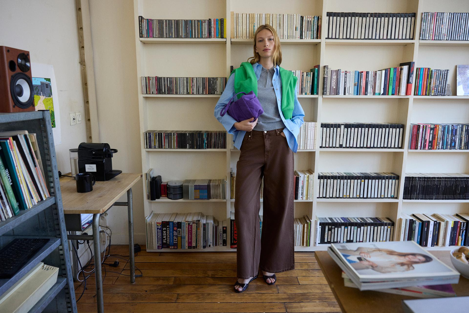 Parfois Total look con camicia blu a maniche lunghe in 100% cotone. Colletto a revers e chiusura con bottoni. Taschino laterale. Sotto, il maglione grigio in maglia maniche corte con colletto polo. Chiusura con zip sul davanti. Bordi a coste. Pantaloni wide leg marrone in denim 100% cotone è a taglio dritto. Con tre tasche frontali e due tasche posteriori. Infine, l’apertura con bottone e la chiusura con cerniera. Un tocco di colore è dato dalla felpa in cotone verde con bordi a coste e scollo rotondo. Manica lunga. Borsa bowling in nylon viola. Chiusura con doppia cerniera. Taschini esterni ai lati. Spallacci fissi.