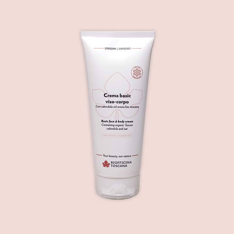 Biofficina Toscana Crema basic viso-corpo Una crema testata per pelli sensibili o tendenti ad arrossamenti, ideale anche per pelli secche. Con avena bio toscana e olio extravergine di oliva “Toscano IGP” bio uniti all’urea al 5% che le conferiscono proprietà nutritive, idratanti, emollienti e calmanti. Una formula ricca con fattori di idratazione naturale per un effetto barriera. Protegge la pelle reidratandola con un effetto lenitivo- riequilibrante.