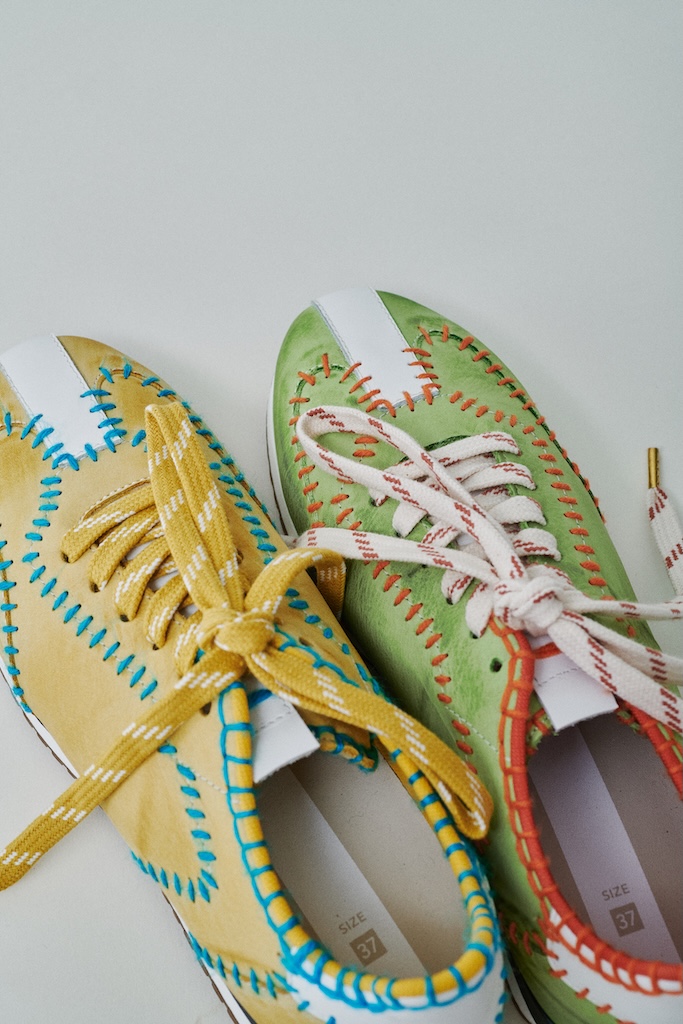 Le Signe . Ogni suola è realizzata attraverso il processo di vulcanizzazione. La suola in gomma è elastica, omogenea, resistente alle abrasioni. Mischiando granuli di gomma di diverso colore, quindi, è possibile ottenere una texture distintiva e unica. In alcune edizioni numerate e a tiratura limitata, dettagli artistici come bruciature controllate su tomaia e lacci, ottenute con fiamma ossidrica, trasformano ogni sneaker in un pezzo irripetibile.