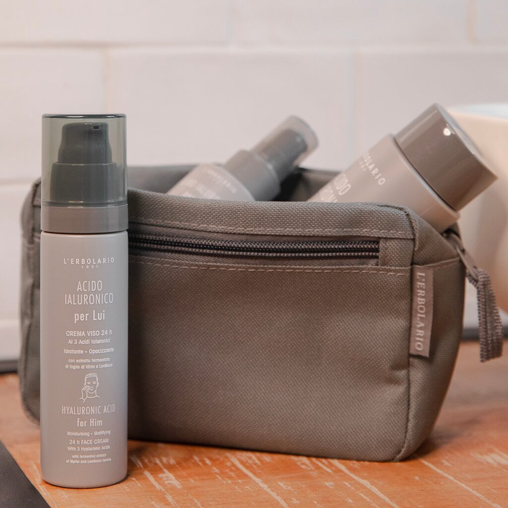Box Beauty Acido Ialuronico per Lui L’Erbolario. Il necessario per la routine quotidiana. Ai 3 Acidi Ialuronici con estratto fermentato di foglie di Mirto e Lentisco Anche in viaggio. Balsamo Multifunzione Viso, Barba & Capelli si utilizza sia come dopobarba lenitivo sia come balsamo disciplinante per barba e capelli. Shampoo Doccia Tonificante deterge dolcemente la pelle e i capelli, regalando una speciale morbidezza. Crema Viso 24H Idratante – Opacizzante rafforza la barriera cutanea lasciando la pelle del viso più fresca e compatta. Ideale anche per il cuoio capelluto. Contorno Occhi Anti-fatica Levigante idrata e compatta la delicata superficie del contorno occhi.