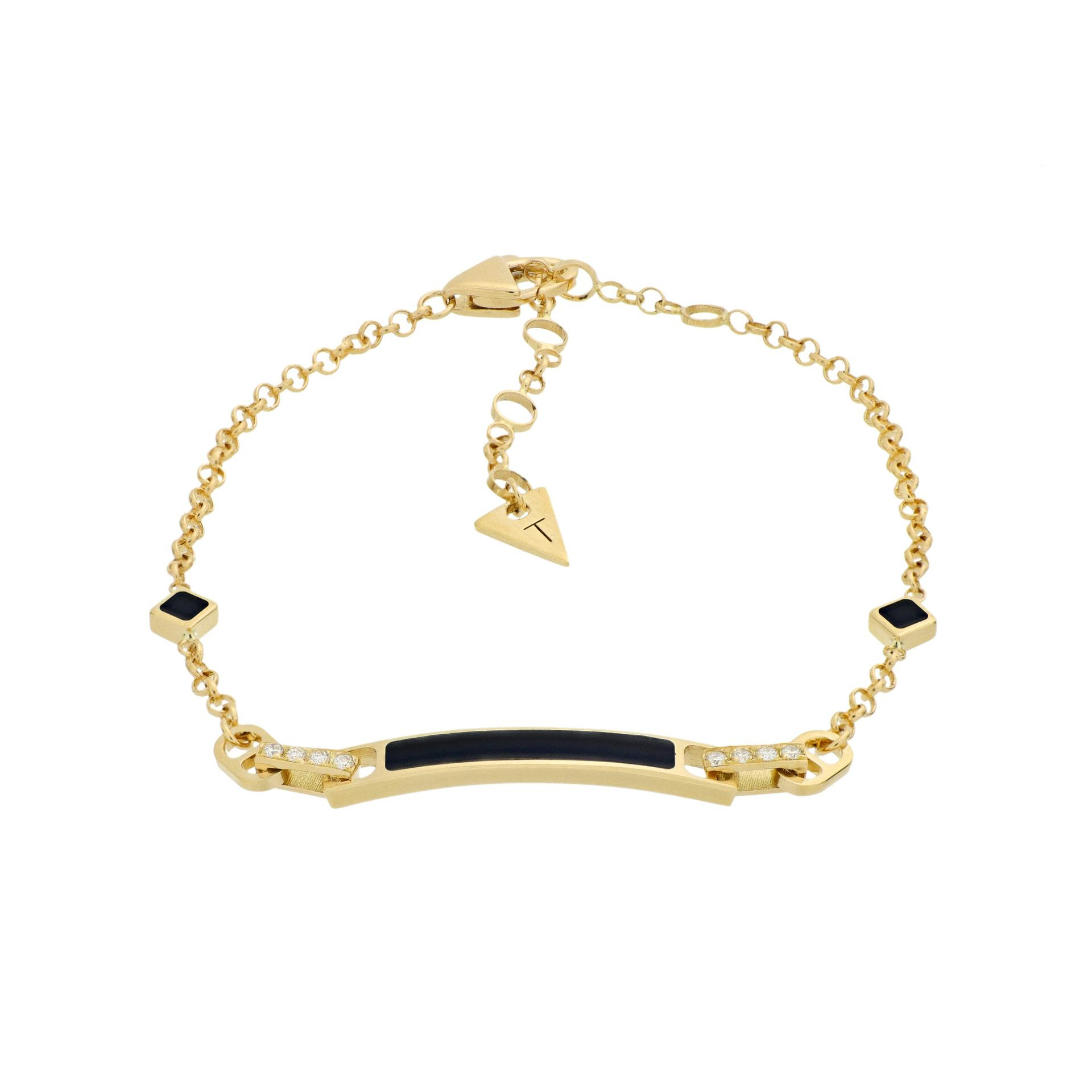 Bracciale Tavanti Collezione Unica Un design essenziale attraverso forme pulite e contrasti materici. In oro giallo 18kt, il bracciale unisce l’intensità dell’onice naturale con la luce dei diamanti, Un equilibrio raffinato dunque tra minimalismo e carattere, dove il gioiello diventa dettaglio distintivo da indossare ogni giorno.