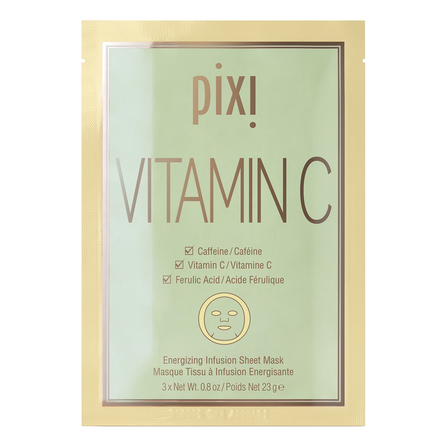 Vitamina C – Maschera in tessuto Eclat Pixi Maschera viso in tessuto dall’effetto energizzante e rivitalizzante immediato. Il siero concentrato di vitamina C illumina, mentre l’estratto di caffeina decongestiona e rassoda la pelle per un incarnato rivitalizzato. Ravviva la luminosità della pelle e illumina l’incarnato Idrata la pelle istantaneamente.