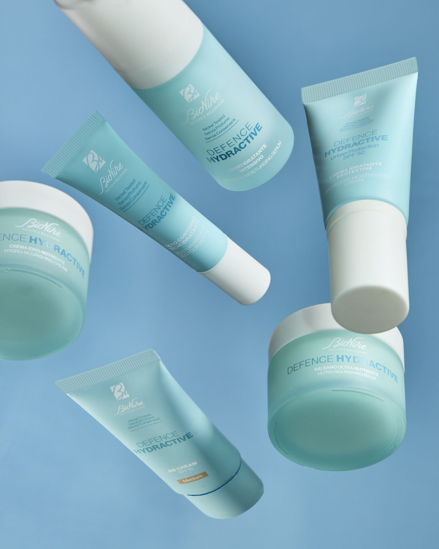 La filosofia formulativa di BioNike è orientata da sempre alla massima tollerabilità cutanea. Tutti i prodotti della gamma Defence Hydractive sono Nickel Tested con controllo su ogni singolo lotto di produzione, e sono formulati senza profumo e senza conservanti convenzionali secondo l’Allegato V del Regolamento CE n. 1223/2009.